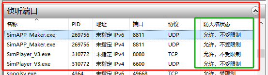 | SimPlayer_V3.exe | 6600 | UDP | 允许,不受限制 |