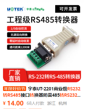 - RS485设备的话,需要另外采购一个RS232转RS485转接头,推荐使用